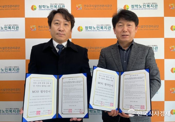 한국시사경제 윤광희 기자 | 청학노인복지관과 세명한방병원 송도옥련점이 지난 13일 지역사회 어르신들의 건강증진과 의료 지원 강화를 위한 업무협약을 체결했다.