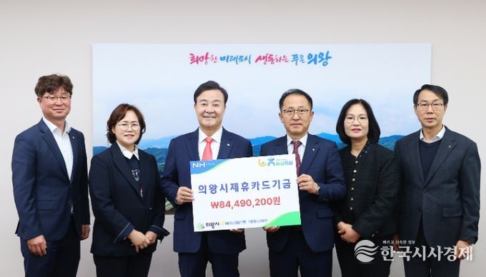 한편, 엔에이치(NH)농협은행 의왕시지부는 최근 5년간 의왕시에 약 3억8천만원의 농협 제휴카드 이용 적립금을 전달했다.