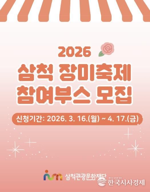 한국시사경제 권충언 기자 | 삼척관광문화재단은 3월 16일부터 4월 17일까지 ‘2026 삼척장미축제’를 함께할 참여부스를 모집한다고 밝혔다.