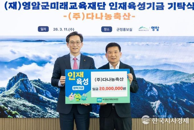 한국시사경제 권충현 기자 | 김종섭 ㈜다나농축산 대표가 11일 (재)영암군미래교육재단에 인재육성기금 2,000만원을 지정 기부했다.