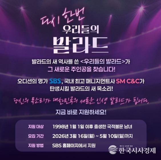 한국시사경제 연예팀 | 시즌2로 돌아오는 SBS ‘우리들의 발라드’가 발라드 신화를 이을 새로운 목소리를 찾는다.