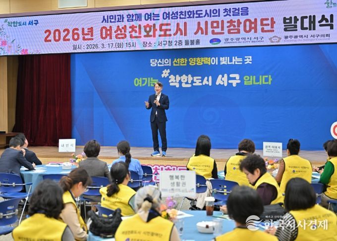 한국시사경제 광주취재본부 | 광주광역시 서구는 17일 서구청 들불홀에서 ‘여성친화도시 시민참여단’ 발대식을 열고 여성의 안전과 돌봄, 양성평등 실현을 위한 주민 참여 활동을 본격 시작한다.