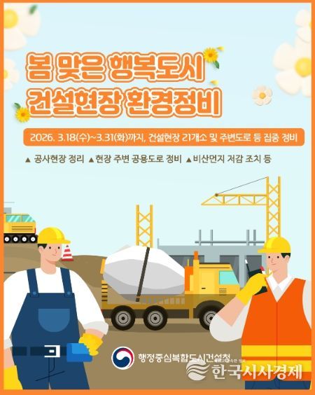 한국시사경제 사회팀 | 행정중심복합도시건설청은 3월 18일부터 31일까지 행복청 발주·인허가 건설현장 21개소를 대상으로 봄맞이 환경정비를 실시한다.