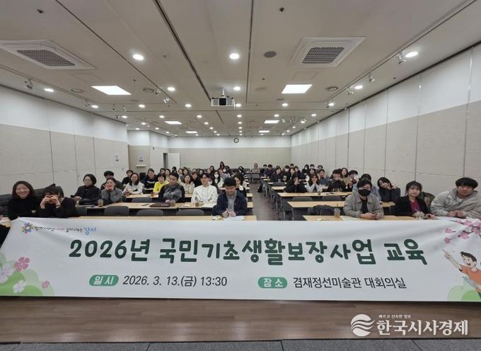 한국시사경제 기동취재팀 | 서울 강서구는 지난 13일 겸재정선미술관에서 신규 임용 사회복지직 공무원과 주민센터 복지 담당자 등 70명을 대상으로 ‘2026년 국민기초생활보장사업’ 교육을 실시했다.