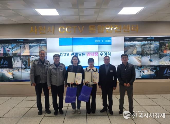 한국시사경제 김숙영 기자 | 경남 사천경찰서는 지난 17일 사천시청을 방문해, 흉기 난동 피의자 발견과 동선 파악에 크게 기여한 CCTV통합안전센터 관제요원 2명에게 감사장을 전달했다.