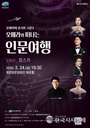 한국시사경제 김태훈 기자 | 해운대문화회관은 24일 오후 7시 30분 오페라떼 시즌3 ‘오페라와 떠나는 인문 여행’ 첫 무대로 오페라 ‘토스카’를 해운홀에서 개최한다.