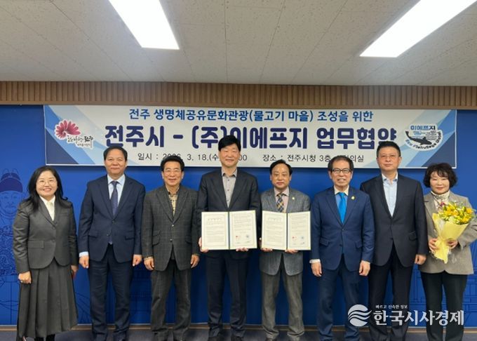 시는 18일 시청 3층 소회의실에서 윤동욱 전주 부시장과 류병덕 ㈜이에프지 대표 등이 참석한 가운데 ‘생명체 공유 문화관광(물고기마을)’ 사업 추진을 위한 업무협약을 체결했다.