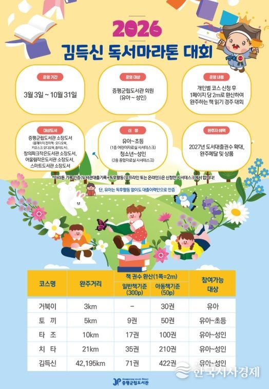참가 방법과 코스별 기준, 인증 절차 등 자세한 사항은 증평군립도서관 누리집에서 확인할 수 있다