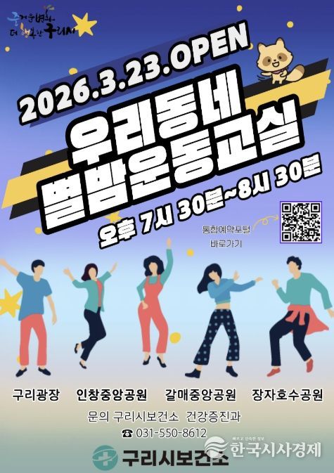 백경현 구리시장은 “저녁 시간대 누구나 부담 없이 참여할 수 있는 프로그램을 통해 시민들의 신체활동을 활성화하고 건강한 지역사회 조성에 이바지하겠다”라며 “앞으로도 시민 건강 증진을 위한 다양한 프로그램을 지속적으로 운영해 나가겠다”라고 말했다.