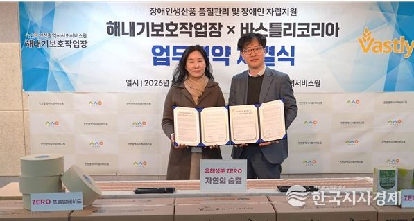 한국시사경제 문화팀 | 인천시사회서비스원 소속 해내기보호작업장은 천연유래 대체원료 화장지 전문기업 바스틀리코리아와 손잡고 장애인 자립지원과 탄소중립 실천에 나선다고 19일 밝혔다.