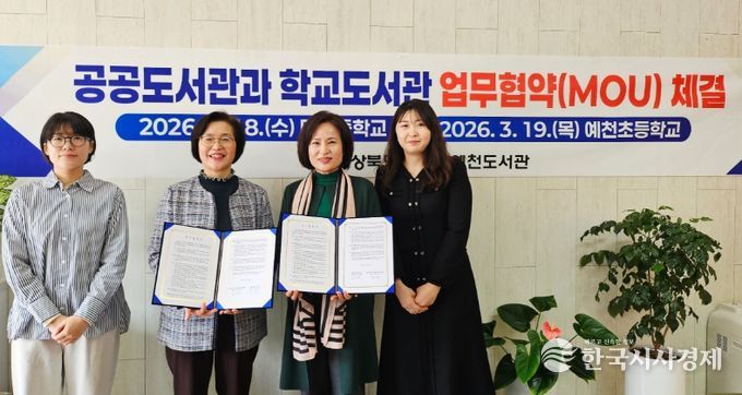 한국시사경제 경북취재본부 | 경상북도교육청 예천도서관은 18일과 19일 학교도서관 연계사업의 일환으로 대창중학교, 예천초등학교 2개교와 학교도서관 활성화를 위한 업무협약(MOU)을 체결했다.