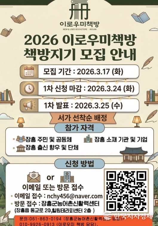한국시사경제 전남취재본부 | 전남 장흥의 새로운 문화 거점, 장흥힐링테라피센터에서 주민이 직접 주인으로 참여하는 혁신적인 공유서점 ‘이로우미 책방’의 첫 페이지를 함께 써 내려갈 ‘책방지기’를 모집한다.