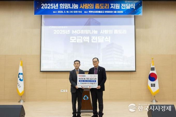 한국시사경제 김숙영 기자 | 부산 북구는 지난 18일 북부산새마을금고 본점에서 ‘사랑의 좀도리 운동’으로 마련된 성금 4,300만 원의 전달식을 개최했다고 밝혔다.