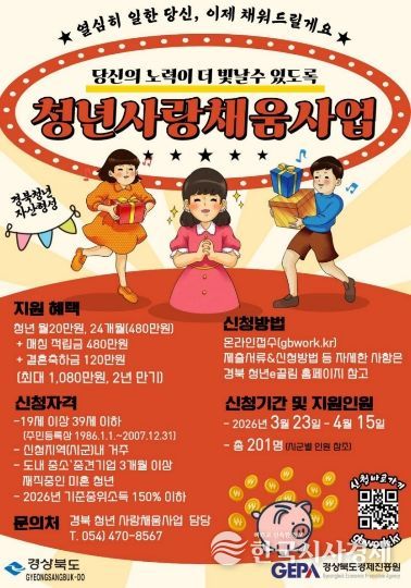 한국시사경제 문화팀 | 경상북도는 중소‧중견기업에 근무하는 청년근로자의 복지향상과 지역정착을 유도하기 위해 ‘경북 청년 사랑채움사업’과 ‘경북 청년 행복카드 지원사업’ 참여자를 3월 23일부터 4월 15일까지 모집한다.