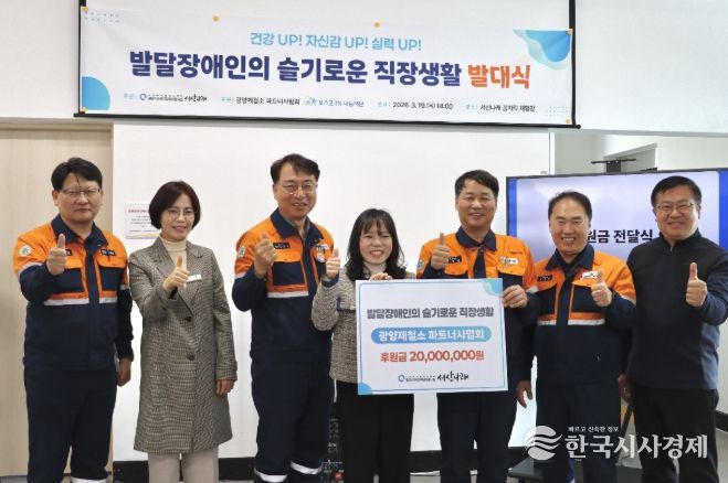 이번 사업은 광양제철소 파트너사협회(회장 김윤철)의 후원으로 추진되며, 서산나래 소속 발달장애인 근로자 22명을 대상으로 건강한 직장생활과 지속적인 근로활동을 지원하기 위해 후원금 2천만 원이 전달됐다.