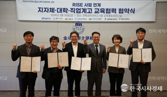한국시사경제 전북취재본부 | 정읍시는 19일 전북과학대학교 및 관내 직업계고 3곳과 손잡고 지자체와 대학, 고등학교를 하나로 잇는 ‘지역혁신중심 대학지원체계(RISE)’ 교육 협력 업무협약을 체결하며 맞춤형 인재 양성에 본격 나선다.