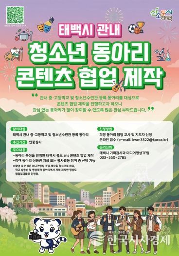 이번 사업은 태백시 관내 중·고등학교 및 청소년수련관에 등록된 동아리를 대상으로 하며, 동아리의 특성을 반영한 태백시 홍보 SNS 콘텐츠를 제작할 예정이다.