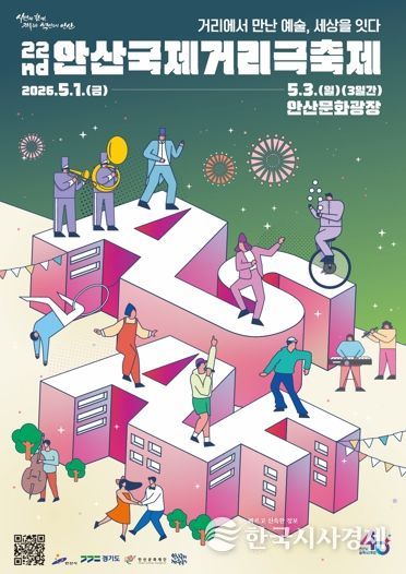 한국시사경제 문화팀 | 안산시와 안산문화재단이 오는 5월 1일부터 3일까지 안산문화광장에서 개최되는 ‘2026 제22회 안산국제거리극축제’의 공식 슬로건과 포스터, 그리고 공연 프로그램을 전격 공개했다.