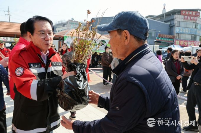 한국시사경제 충북취재본부 | 충북 괴산군은 23일 제81회 식목일을 앞두고 산림보호에 대한 군민들의 의식을 향상하기 위해 나무 나누어주기 행사를 개최했다.