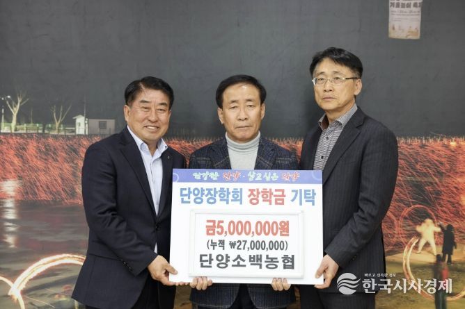 한국시사경제 충북취재본부 | 단양소백농협은 지난 23일 군수실을 방문해 단양장학회에 장학금 500만 원을 기탁했다.