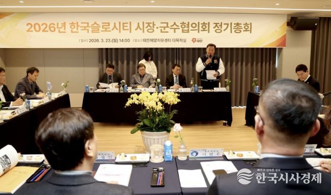 한국시사경제 충남취재본부 | 태안군이 지난 23일 태안군해양치유센터에서 한국 슬로시티 회원 시·군 지자체장 및 관계 공무원, 한국슬로시티본부 관계자 등 60여 명이 참석한 가운데 ‘2026년 한국슬로시티 시장·군수협의회 정기총회’를 개최했다.