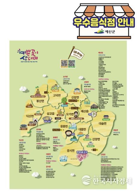 한국시사경제 충남취재본부 | 예산군은 예산을 방문하는 관광객과 군민이 안심하고 음식점을 이용할 수 있도록 주요 관광지에 우수음식점 안내판을 설치했다고 밝혔다.