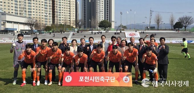 한국시사경제 문화팀 | 포천시는 포천시민축구단이 지난 22일 열린 2026 케이(K)3리그 홈 개막전에서 경주한수원축구단을 2대1로 제압하며 값진 승리를 거뒀다고 밝혔다.