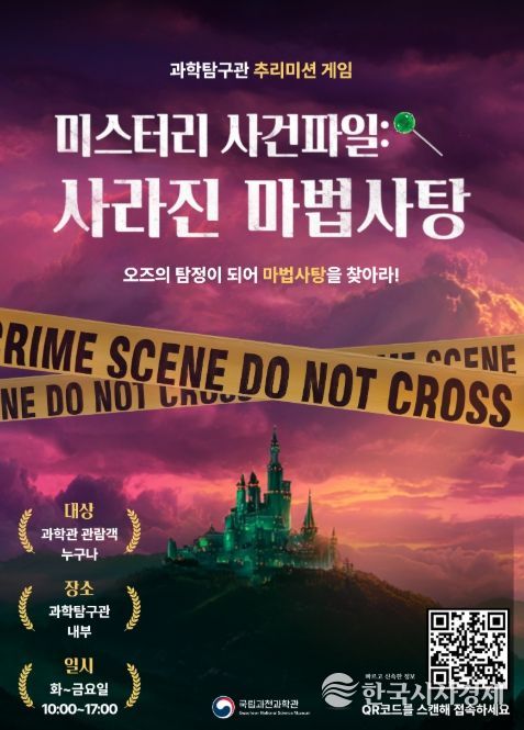 한국시사경제 디지털 뉴스팀 | 과학기술정보통신부 국립과천과학관은 관람객이 즐길 수 있는 디지털 추리 임무(미션) 프로그램 『수수께끼(미스터리) 사건 파일: 사라진 마법 사탕』을 3월 31일부터 과학탐구관에서 선보인다고 밝혔다.