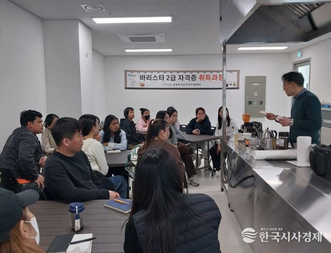 한국시사경제 경기북부취재본부 | 포천시는 지난 21일 외국인주민의 안정적인 지역사회 정착과 취업 역량 강화를 위한 ‘바리스타 2급 자격증 취득과정’을 개설하고 첫 수업을 진행했다.