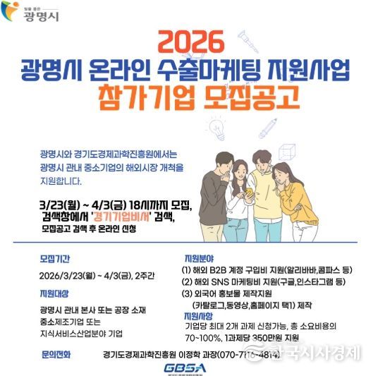 한편, 광명시는 지난해 온라인 수출 마케팅 지원사업 12개사 12건, 수출물류비 지원사업 12개사 147건을 지원하며 관내 기업의 해외시장 진출을 꾸준히 뒷받침해 왔다.