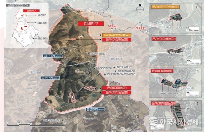 마지막으로 괴산군 청안면 금신 지구는 정비형으로 3년간 사업이 추진되며 사업비 50억원(25억원)을 투입해 돈사 3개소, 우사 1개소를 철거하고, 연계사업으로 청년 농촌 보금자리 조성 사업을 추진할 계획이다.