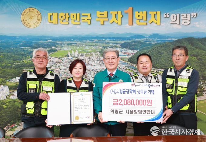한국시사경제 윤광희 기자 | 의령군은 지난 23일 의령군 자율방범연합대(회장 강철석)가 지역 인재 양성을 위해 (사)의령군장학회에 장학금 208만원을 기탁했다고 밝혔다.
