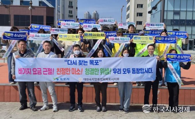 한국시사경제 전남취재본부 | 목포시는 지난 23일 평화광장 일원에서 (사)대한숙박업중앙회 목포시지부와 함께 ‘관광객 맞이 숙박업소 친절·청결·합리적 요금 실천 캠페인’을 실시했다.