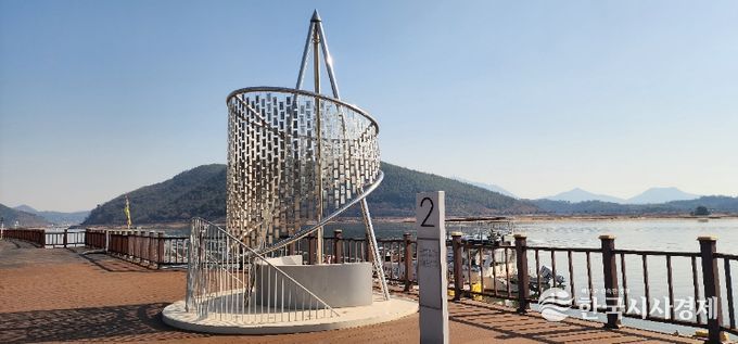 ‘파아란 하늘에 물들다’ 구간에는 데크 끝에 설치된 원형 거울을 통해 하늘과 강, 방문객의 모습이 함께 담기며, 거울 위에 새겨진 '자화상' 일부 시구가 어우러져 색다른 장면을 만들어낸다.