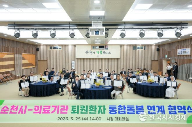 한국시사경제 의료보건팀 | 순천시는 25일 시청 대회의실에서 퇴원환자의 지역사회 안착을 지원하고 촘촘한 의료ž요양 통합돌봄 사업의 내실화를 위해 22개소 의료기관과 업무 협약을 체결했다고 밝혔다.