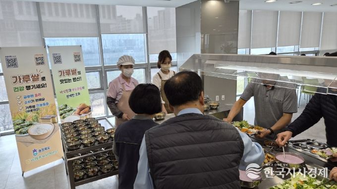 이번 행사는 가루쌀의 판로 개척과 소비 확대를 목적으로 추진됐으며, 구내식당을 운용하는 15개 기관 3,200여명의 직원들을 대상으로 가루쌀을 활용한 제철봄나물전, 고기튀김, 술떡, 카스테라 등 다양한 반찬을 선보였다.
