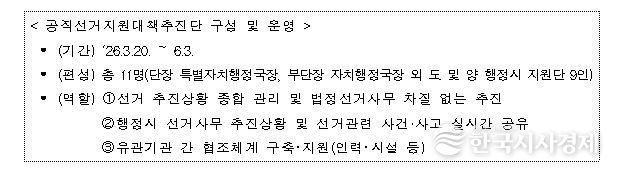 한편, 제주도는 지난 3월 11일 '제9회 전국동시지방선거 공명선거 추진계획'을 수립하고 특별자치행정국장을 단장으로 하는 `공명선거지원대책추진단’을 구성·운영하고 있다.