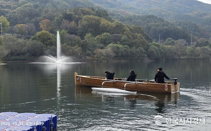 한국시사경제 경기북부취재본부 | 파주도시공사는 열린관광지 조성의 일환으로 마장호수에서 무장애 대형 카누 '킹카누' 운영을 재개한다.