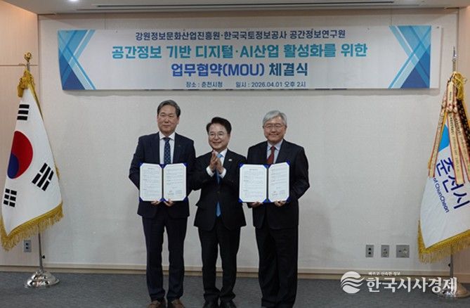 한국시사경제 이정이 기자 | 강원정보문화산업진흥원과 한국국토정보공사 공간정보연구원이 공간정보 기술과 디지털·AI 산업의 융합을 통한 지역경제 활성화와 관련 산업 진흥을 위해 업무협약을 체결했다. 이번 협약은 지역 중심의 공간정보 기반 디지털·AI 산업 활성화를 위한 협력체계를 확립하고, 양 기관의 전문성과 역량을 연계하기 위해 추진됐다.