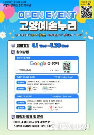 고양시장애인종합복지관은 플랫폼 이용자를 늘리고 전시를 활성화시키기 위해 4월 1일부터 29일까지 다양한 이벤트를 실시하고 이벤트 참여자 중 추첨을 통해 다양한 기프티콘을 제공할 예정이다. 당첨자 발표는 4월 30일 플랫폼을 통해 발표한다.