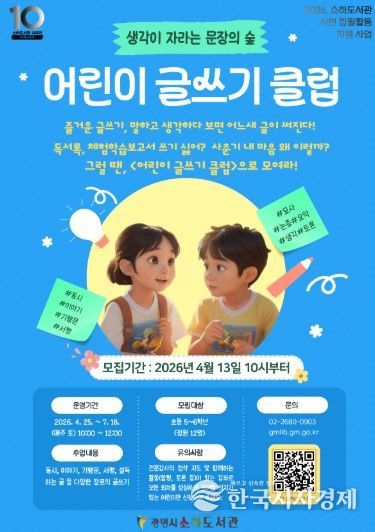한국시사경제 경기취재본부 | 광명시 소하도서관은 어린이 글쓰기 클럽 ‘생각이 자라는 문장의 숲’ 수강생을 오는 13일부터 모집한다.