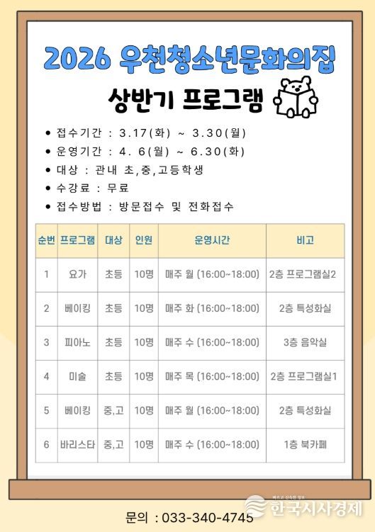 한국시사경제 문화팀 | 우천청소년문화의집에서 우천 지역 청소년들을 위한 상반기 프로그램을 시작한다.