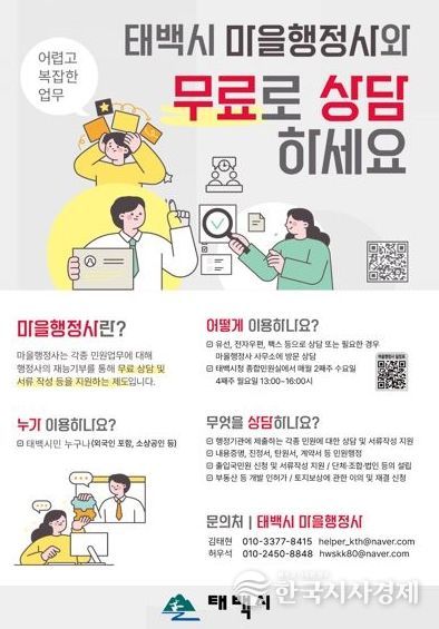 한국시사경제 권충언 기자 | 태백시는 시민들이 일상에서 겪는 복잡한 행정 문제를 신속하게 해결할 수 있도록 4월부터 ‘마을행정사’ 운영을 시작한다고 밝혔다.