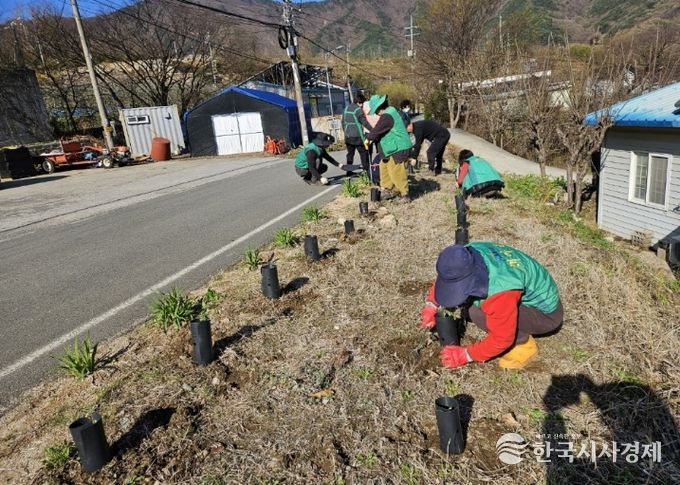 한국시사경제 사회팀 | 밀양시새마을회(회장 이선동)와 새마을지도자밀양시협의회(회장 허석)는 8일 산내면 동명마을에서 ‘한반도 평화공존 실현을 위한 민간산림협력 캠페인’의 일환으로 탄소중립 실천 나무심기 행사를 개최했다.