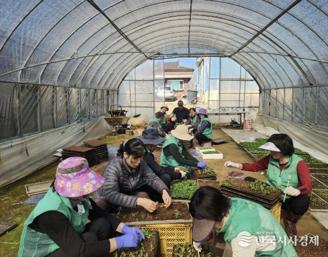 이번 작업에는 신평면 새마을지도자와 각 마을 부녀회장 등 총 42명이 참여해, 그동안 노지에 파종해 정성껏 길러온 꽃씨를 모종 포트로 옮겨 심는 작업을 함께 진행했다.