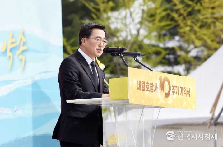 한국시사경제 권충언 기자 | 김동연 경기도지사가 16일 세월호 참사 10주기 기억식에 참석해 대한민국의 현실은 세월호 참사가 있었던 10년 전에서 한 발짝도 나아가지 못했다며 세월호의 교훈이 우리 사회에 온전히 뿌리내리도록 끝까지 기억하겠다고 밝혔다.