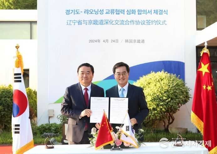 두 사람은 이날 ▲기업 비즈니스 환경 개선과 투자ㆍ기업협력 확대 ▲제조ㆍ과학기술혁신ㆍ현대농업 등 산업의 기업ㆍ기관 간 교류협력 강화 ▲문화ㆍ체육ㆍ관광ㆍ교육교류 확대 등의 내용을 담은 '경기도-랴오닝성 교류협력 심화 합의서'에 서명했다.