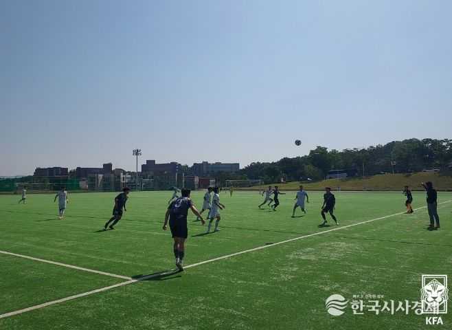 전반 21분 경일대가 결정적인 기회를 잡았지만 침묵을 깨는 데에는 실패했다. 노병효가 오른쪽 측면을 돌파한 뒤 페널티 에리어 안에 있던 유찬희에게 컷백을 연결했다. 하지만 유찬희가 문전에서 마무리한 슈팅은 골대 위로 뜨며 아쉬움을 삼켰다.