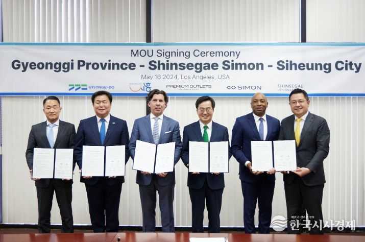김동연 지사는 현지 시각 16일 오후 LA무역관에서 임병택 시흥시장과 함께 마크 실베스트리(Mark Silvestri) 사이먼프로퍼티그룹 개발부문 사장, 우체 아큐주오(Uche Akujuo) 부사장, 신상화 ㈜신세계인터내셔널 상무, 윤홍립 ㈜신세계사이먼 상무를 만나 경기도 내 프리미엄아울렛 신규ㆍ확장에 따른 투자협력 업무협약을 체결했다.