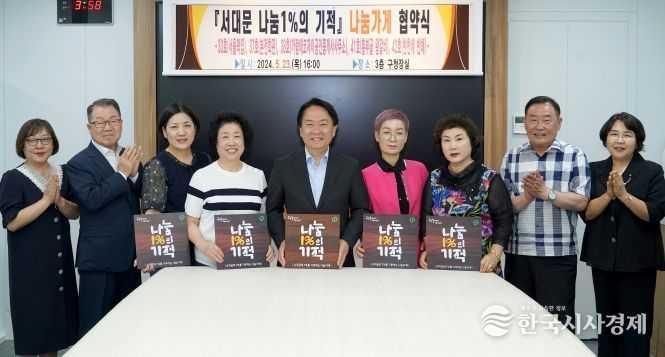 한국시사경제 경제팀 | 서대문구는 최근 구청장실에서 자신의 사업장 수익의 일정 부분(1%)을 지역사회에 환원하기로 한 소상공인들과 ‘서대문 나눔1%의 기적’ 협약을 맺었다고 28일 밝혔다.